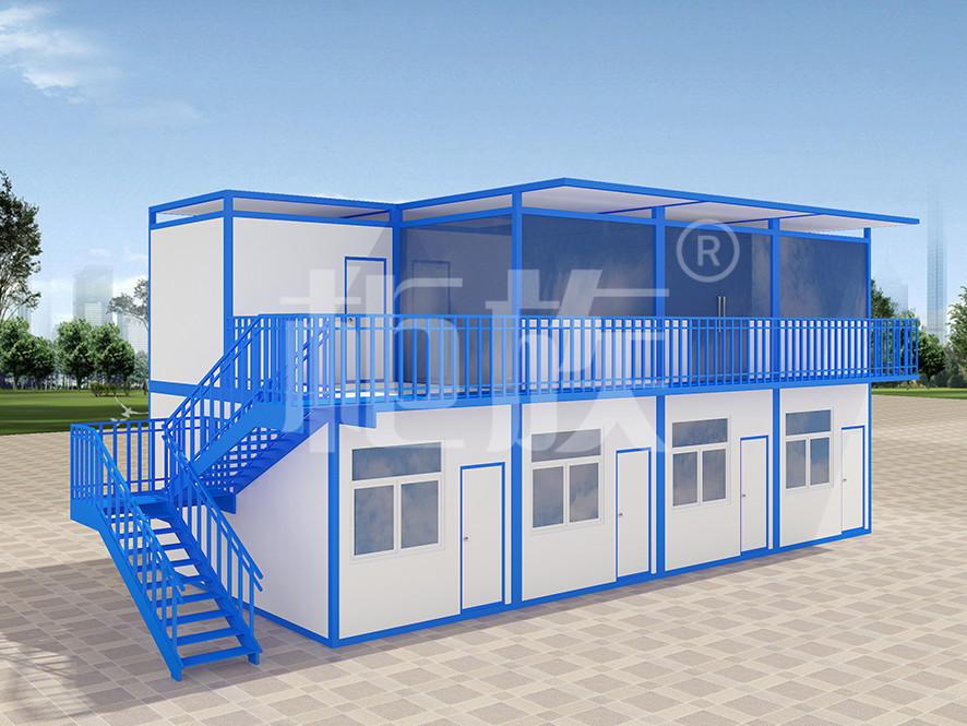 多個(gè)箱體拼接而成,藍(lán)白色的外觀簡(jiǎn)潔流暢。工廠生產(chǎn)、成品直接運(yùn)輸至使用場(chǎng)地,配套設(shè)施齊全,即到即用。